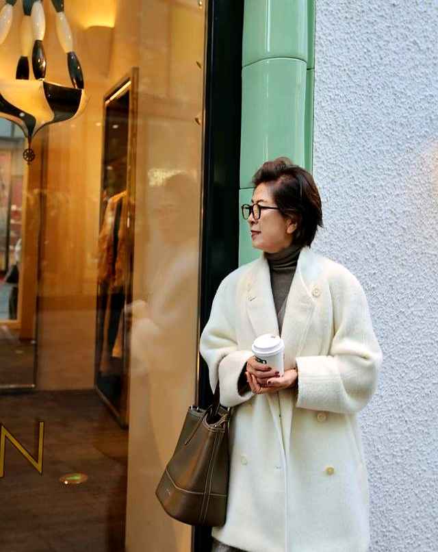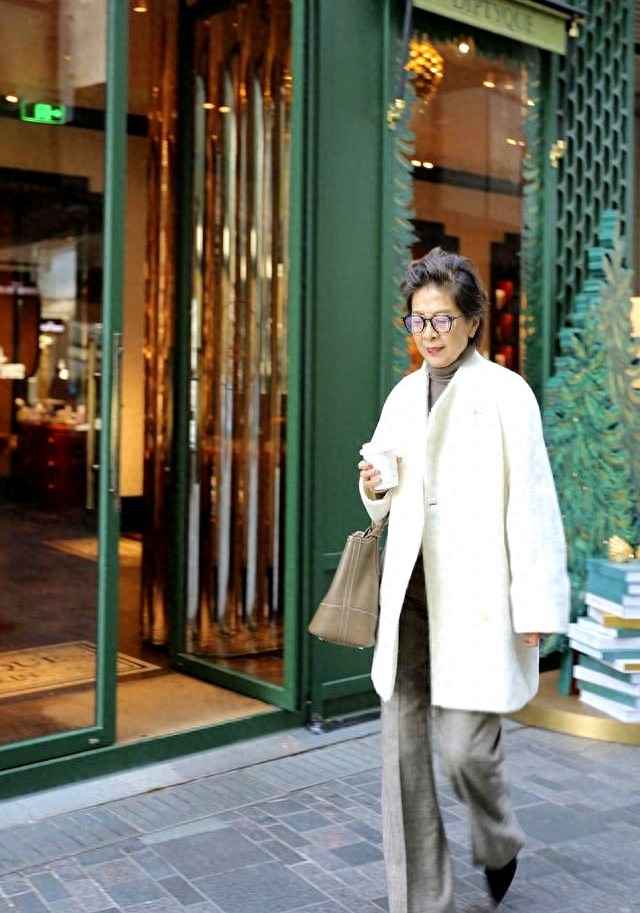 她最爱穿的是米白色呢子大衣,内搭同色系的针织衫,下身配一条九分直筒裤,微微露出脚踝。