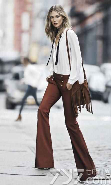 2. 早秋优雅担当:喇叭裤+踝靴