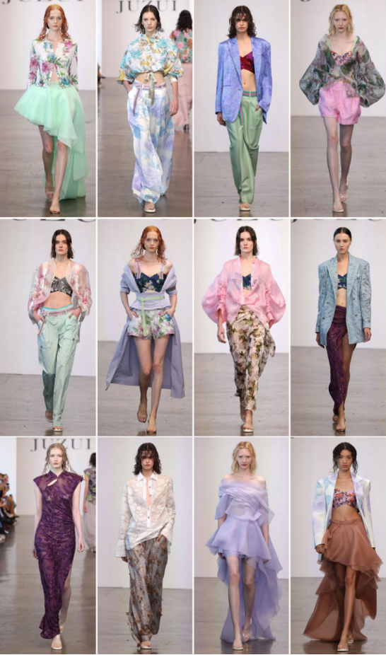 当然,最怕的就是“老气”。这也是中式设计过去给人留下的刻板印象。但今时今日的中式名牌们,早就在“减龄”与“国际化”上玩出了花。你比如“密扇”,它的设计就特别“鬼马”,从中国神话和历史里汲取灵感,用大胆的廓形、夸张的图案和街头感结合,完全是给Z世代准备的潮流宣言-4。而像“Uma Wang”这样的品牌,则走的是另一条充满哲学和艺术感的路径。它没有直接用盘扣、立领这些显性符号,而是通过大地色系、充满流动感的面料和极具建筑感的剪裁,营造出一种静谧而强大的东方氛围,连国际时装周都为之倾倒-1。这种设计,诠释的是一种“神韵”而非“形似”,它让东方美学成为一种全球都能读懂的高级语言。