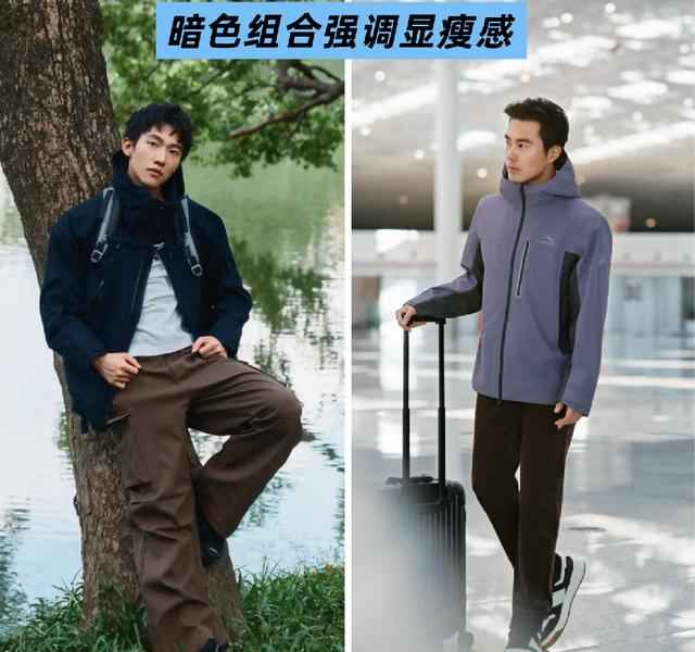 不同场合搭配不同:商务休闲用单色冲锋衣配西装布直筒裤,户外运动选撞色冲锋衣加弹力裤,日常通勤则用立领款式、九分裤和轻便小白鞋,轻松应对各种场景。