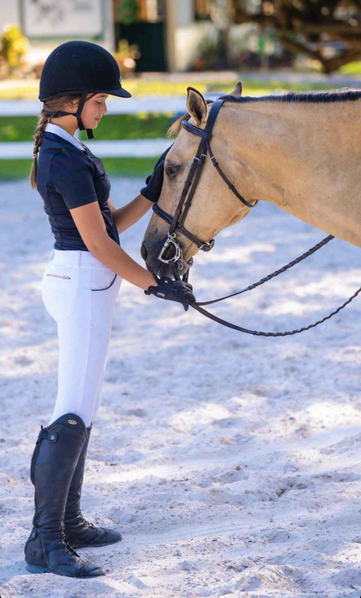 普通孩子的娱乐可能是玩手机或去游乐园,但富人家小孩的活动多是游泳或赛马。阿拉贝拉虽然不算在马背上长大,但爱马的她从小就和马结缘。穿专业骑装抚摸马儿的她,温柔中带着力量,坚韧又强大。