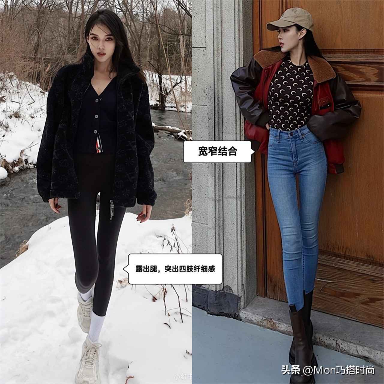 (技巧3)宽窄结合穿法,突出四肢纤细