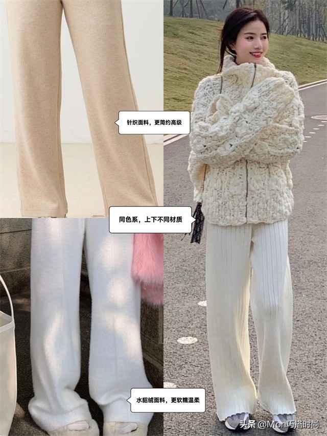 单品一、软糯针织阔腿裤,浅色最提气质