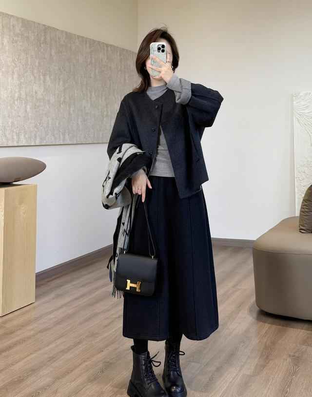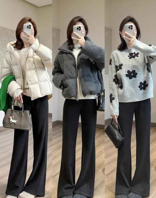 想象一下,用藏蓝短款羽绒服搭配深灰阔腿裤,再踩一双政务版马丁靴,整体显得既干练又温暖。