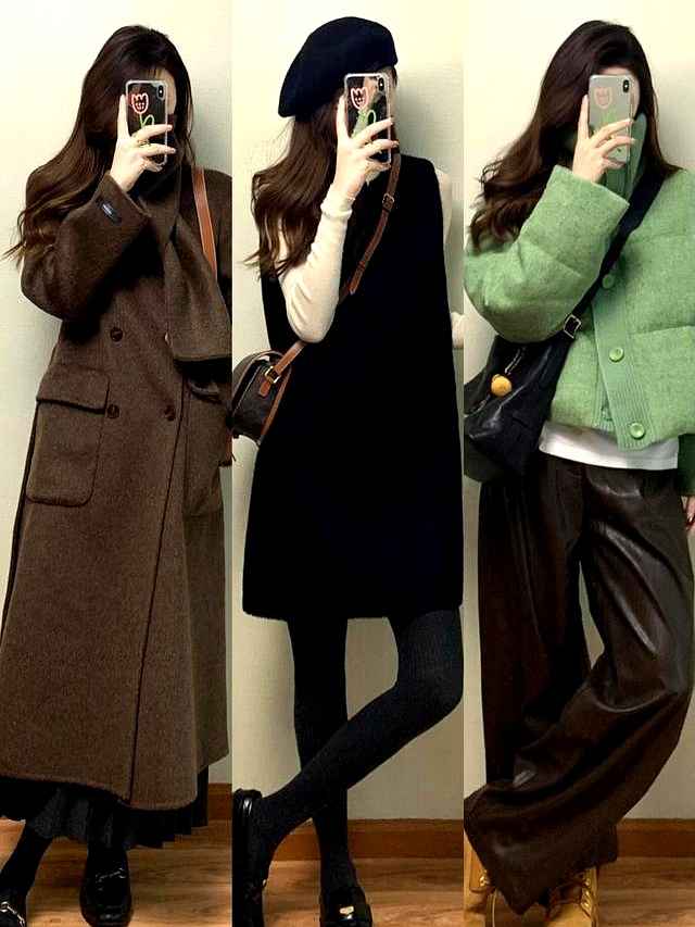 先说说颜色。今年超火的“暖调中性色”,其实就是给大地色加了层滤镜:驼色里带点焦糖,像刚搅开的布丁;深棕里混点陶土,像新烧的陶器;米白升级成燕麦奶白,自带柔光效果。我在一家商场专柜试过:同一款大衣,燕麦奶白比纯白直接显瘦五斤,销售小姐姐笑着说“姐你穿这个色,像开了美颜相机”。