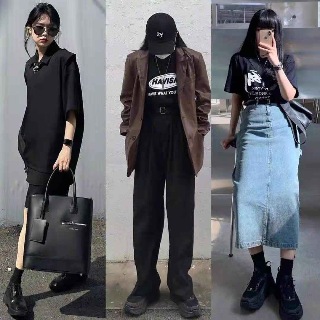 小个子女生选对酷帅风,气场也能很强。牛仔铅笔裙适合小个子,突出下半身线条,视觉上显高。配老爹鞋,显瘦又时尚,找到合适款式效果更好。