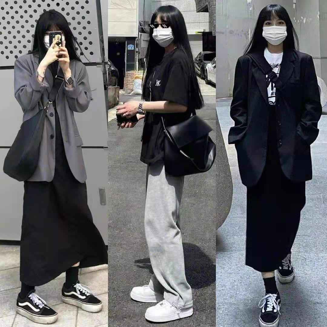 说完裤子,再聊聊裙子。下半肉肉的女生可以试试A字裙,遮肉效果超好。垂坠感强的裙子质感十足,长度到脚踝,配小白鞋或老爹鞋就很好看。