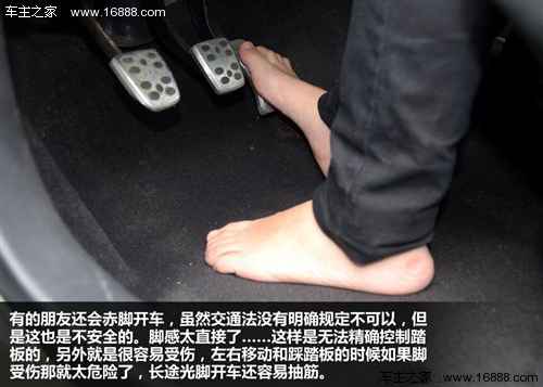 其他“黑名单”成员还包括:尖头皮鞋(接触面积太小,影响控制)-9、中高筒皮靴/马丁靴(束缚脚踝,活动不灵便)-5-9、以及冬天常见的雪地靴(鞋头笨重肥大,极易卡在油门和刹车踏板之间)-5-9。对了,还有人问能不能光脚开?绝对不行!光脚开车,踏板上的防滑颗粒会硌得脚底生疼,同样无法精确施力,而且一旦脚底出汗,打滑得更厉害-10。
