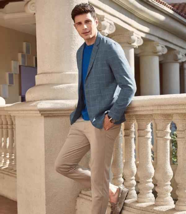 秋冬男士穿搭最怕臃肿,想兼顾保暖与帅气,单西装外套配T恤是不错的选择。这种搭配简洁利落,丝毫不拖沓。如果是职场或商务场合,把T恤换成衬衫,更能凸显干练气质。再配上卡其色或黑色休闲裤,型男范儿瞬间拉满!