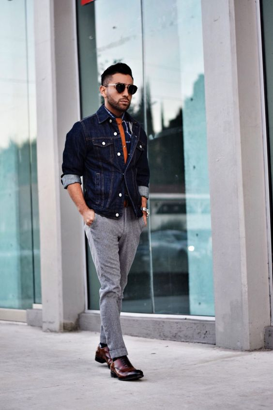 答: 选一件剪裁合身、水洗磨白不夸张的牛仔外套。内搭衬衫或纯色针织衫,下装配直筒西装裤或垂感好的阔腿裤。鞋子是点睛之笔,推荐乐福鞋或皮质切尔西短靴-9。这身搭配既保留了牛仔的休闲感,又通过利落的裤型和精致的鞋款提升了专业度,妥妥的 smart casual 风。
