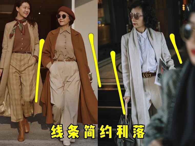 特点一:款式要简约,这个年纪靠气质取胜,别选浮夸款。特点二:颜色和面料要高级,整体搭配和谐就行。