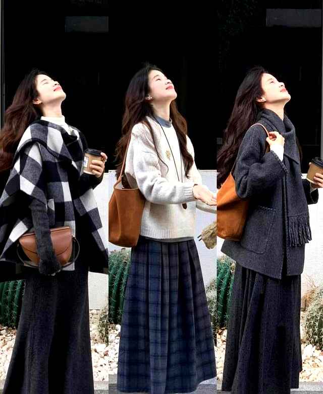 小个子女生记得把格纹放在上半身,外套选短款,视觉上能拉长腿部线条。