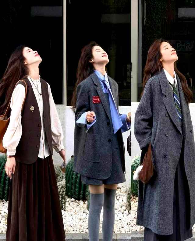 真正能让人眼前一亮的,是一些小巧思:比如把格纹元素玩出花样、让裙装材质有点变化、或者给衬衫飘带留点空间,整套造型立马就有了层次感。