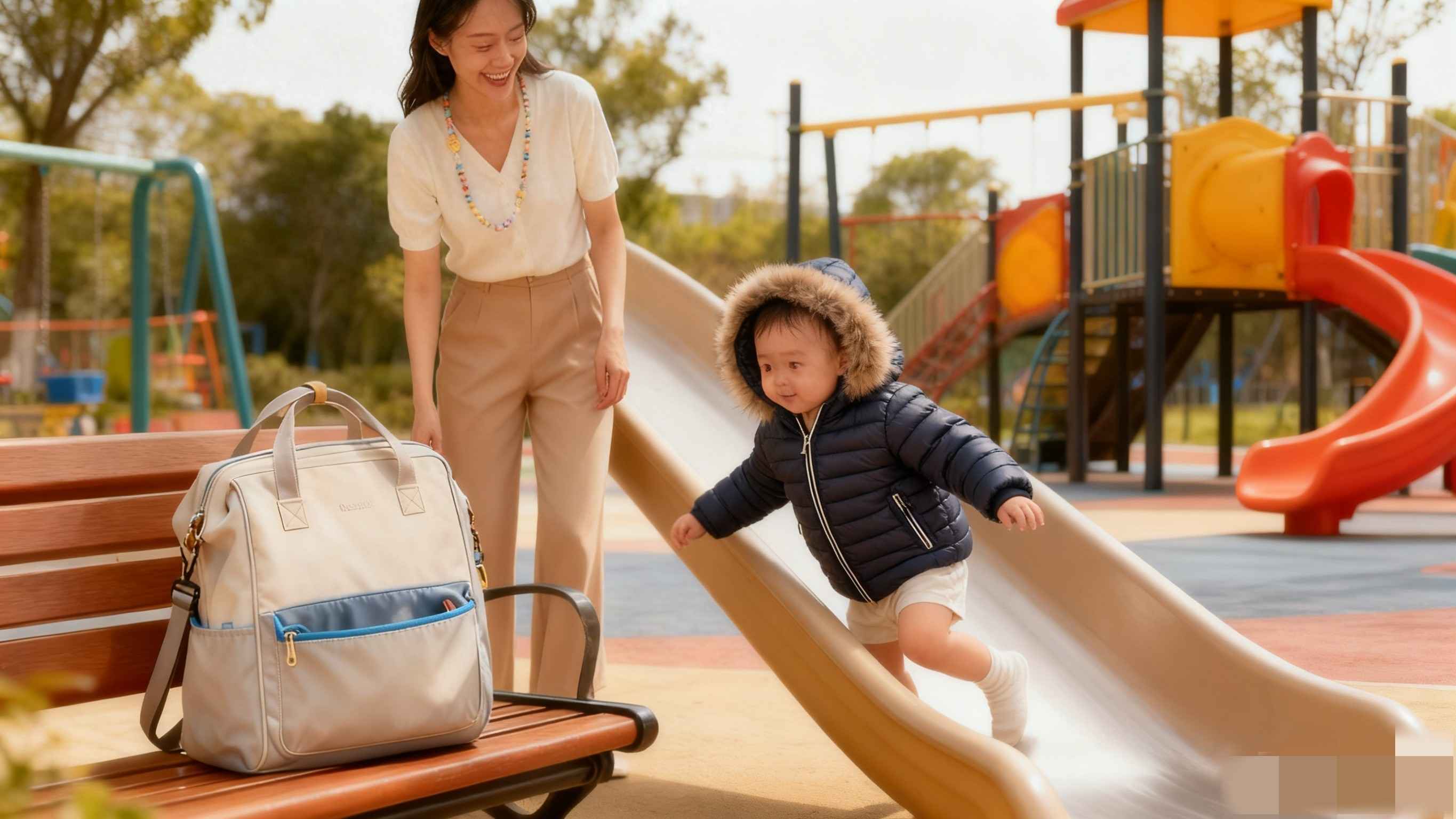 实用款推荐:优先选“轻薄羽绒服/夹棉外套”,轻盈保暖不压身,折叠可塞妈咪包,携带方便;款式选“连帽+双向拉链”,帽子护头,拉链从下往上拉,穿脱不用套头,宝宝不排斥。