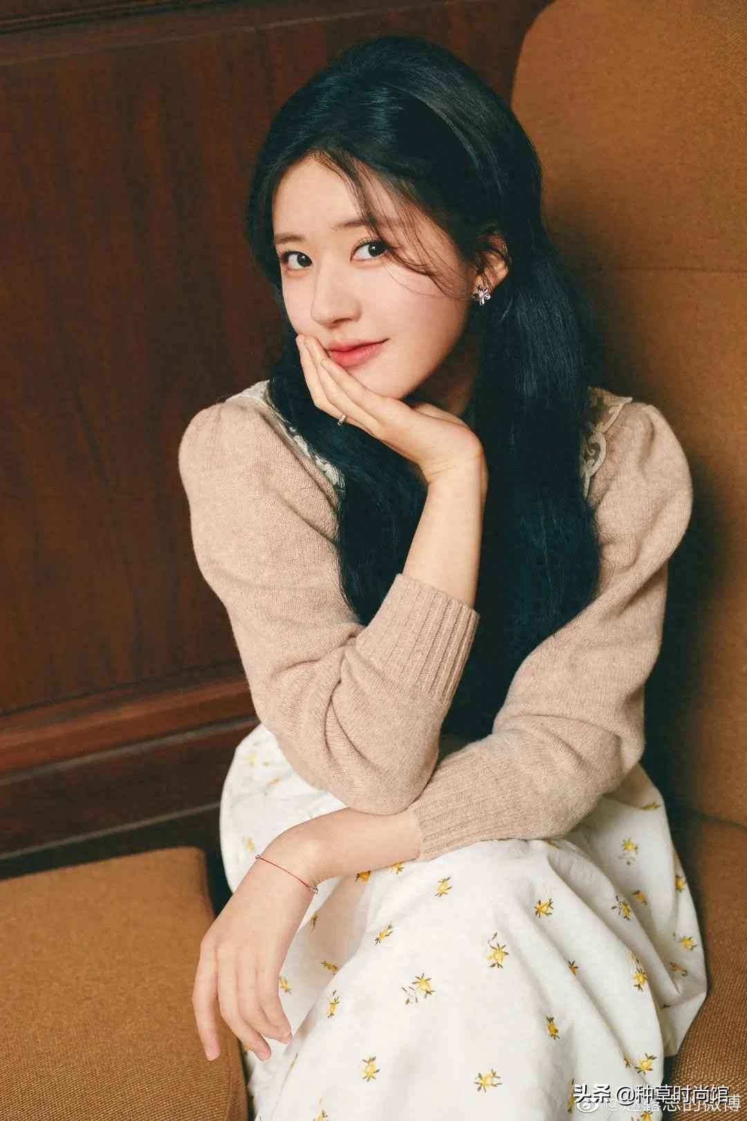 穿针织衫时可以在下摆解开几颗扣子,增加露肤感,温柔又带点小性感。