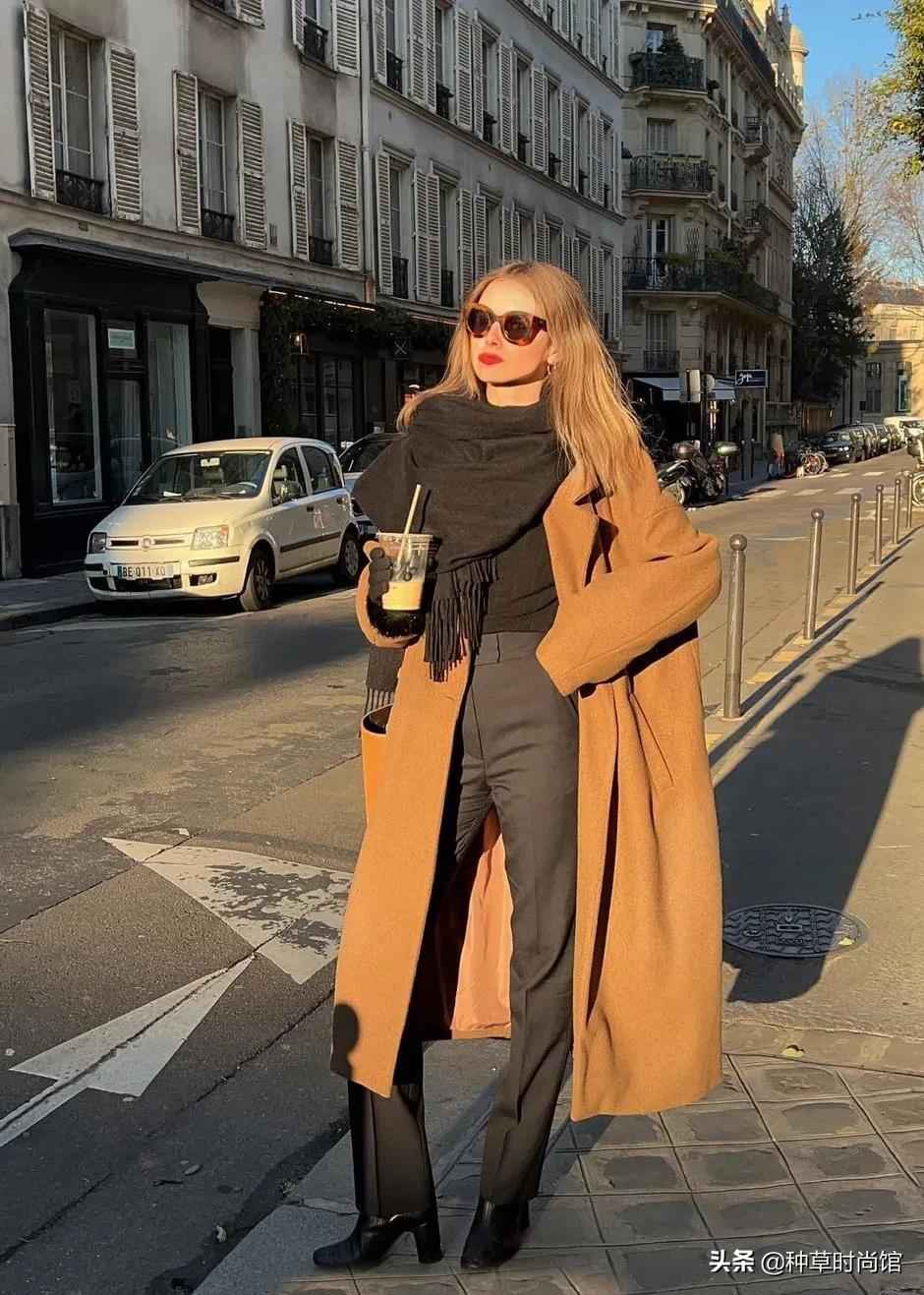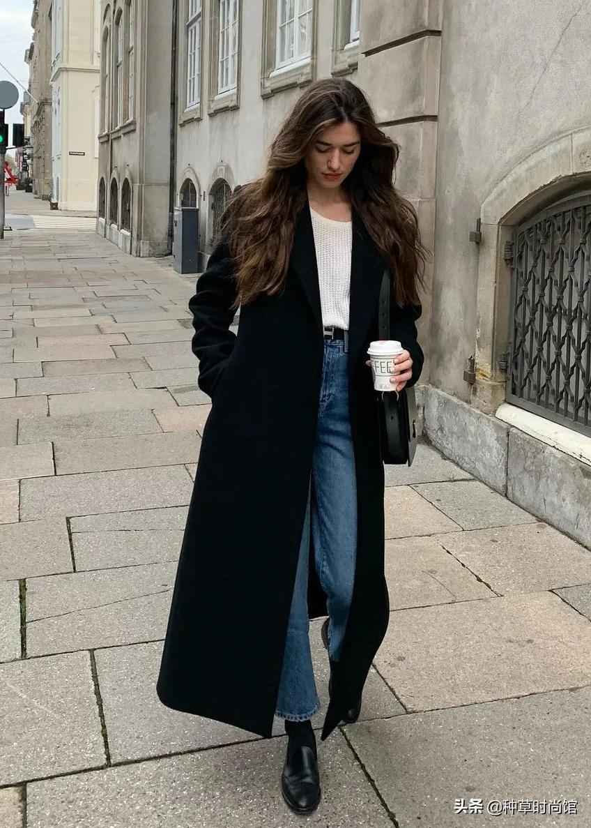 冬天穿衣可以试试“大衣长、内搭短”的原则,外套选到小腿或更长的款式会更显高。