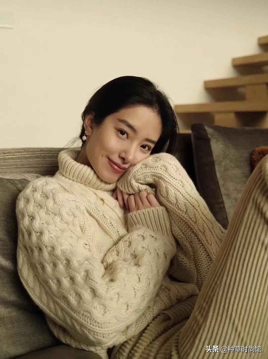 先说领口,显瘦效果V领最好,圆领次之,高领最差,但冬天太冷不建议单穿V领。