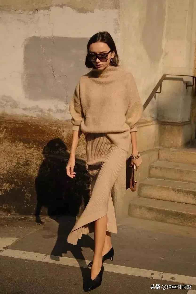 巧用上下身同色系搭配也很棒,颜色过渡自然,延伸线条,时髦显高还不用费心搭。