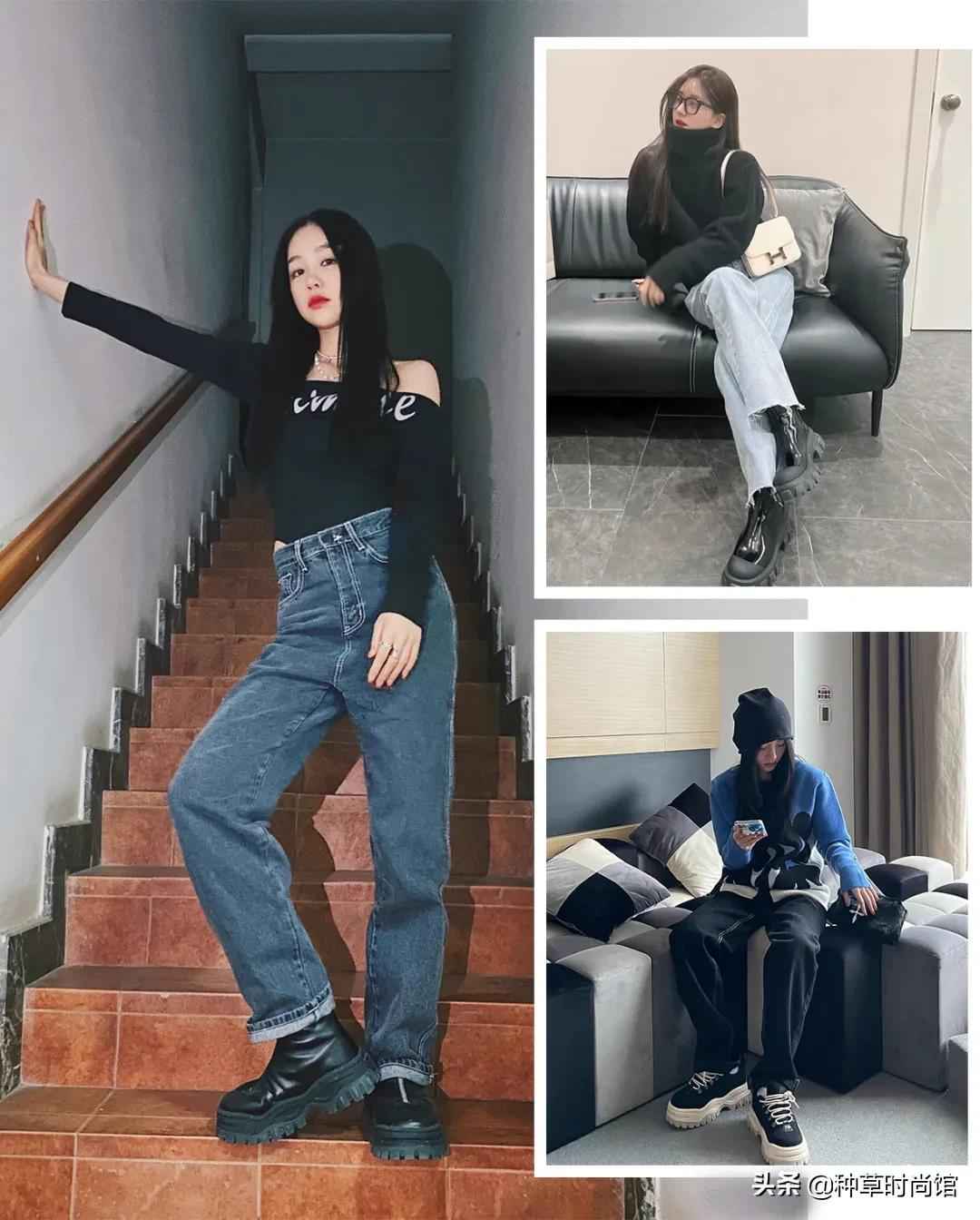马丁靴也是好选择,想更高可以偷偷加增高鞋垫,无形增高最厉害!