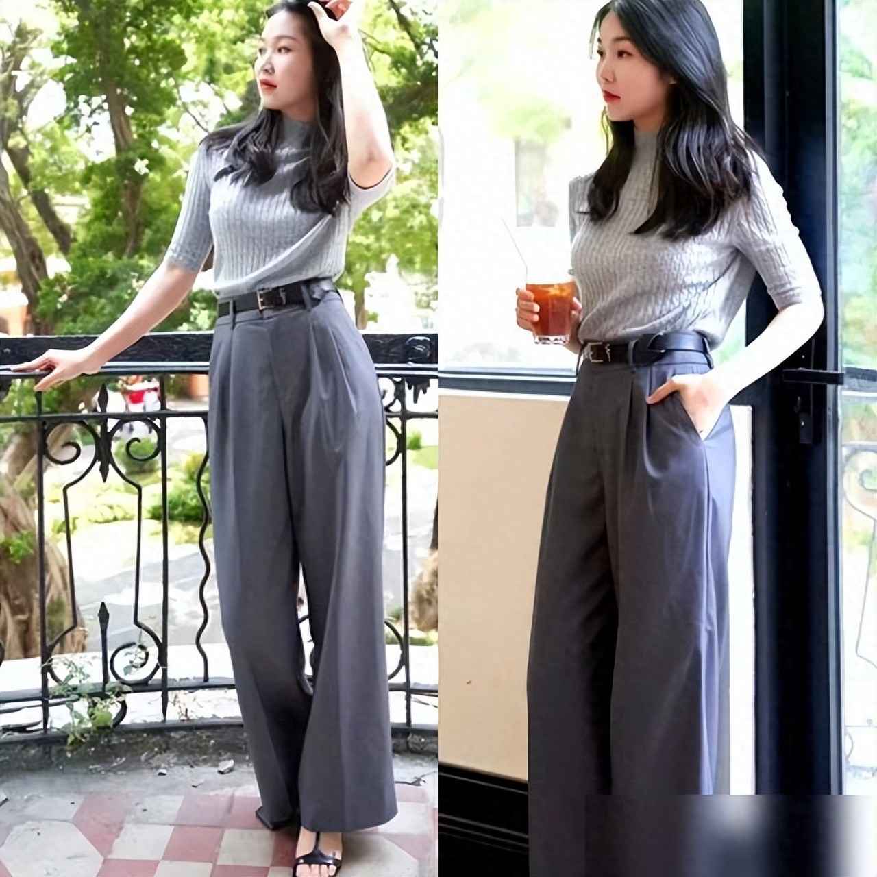 还有同色系穿法,我最近爱穿浅灰针织衫配中灰西裤,柔软针织和挺括面料结合,刚柔并济,有层次又不乱,同事问我是不是买了新套装,其实只是两件基础款搭的!