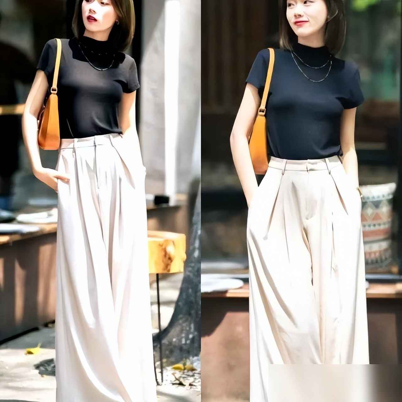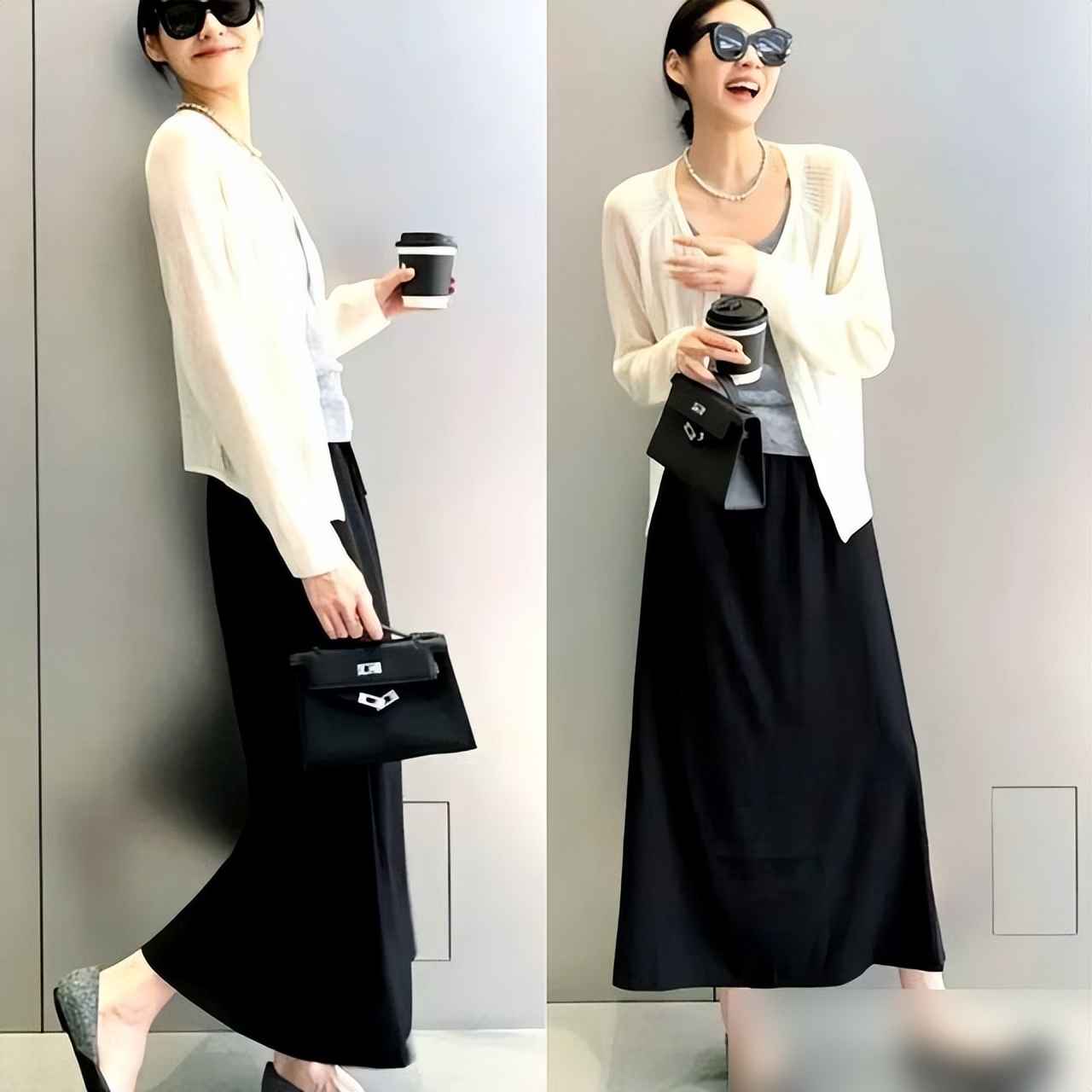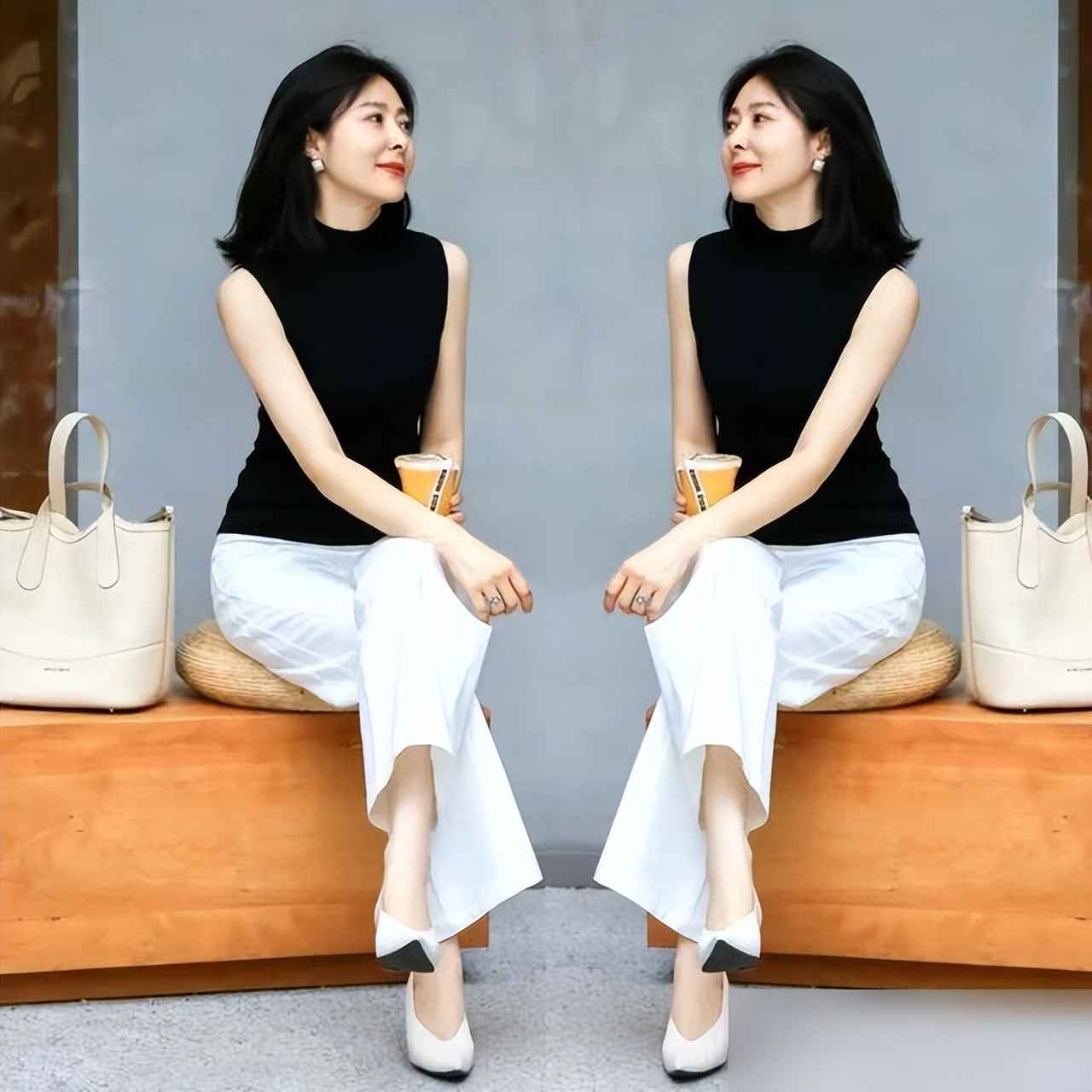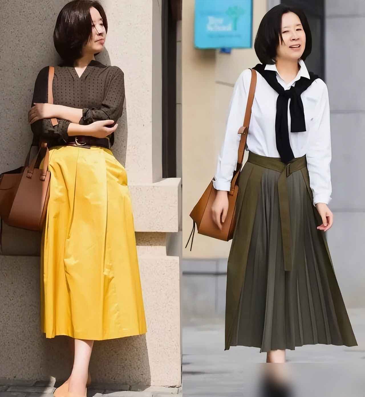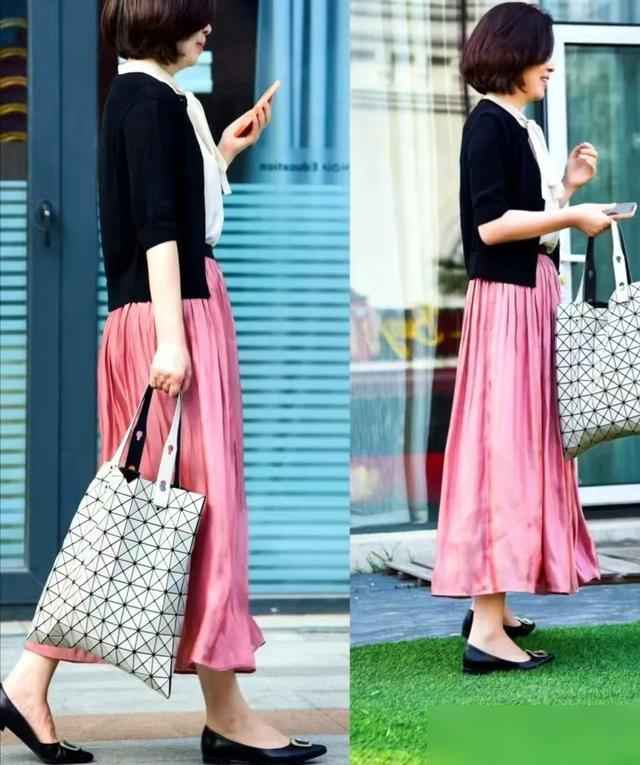 比如黑白搭配,加个米色手袋,立马显露出成熟女性的优雅;如果觉得单调,配个橘色斜挎包,瞬间增添活力——亮点小巧才精致,比穿鲜艳长裙更减龄。