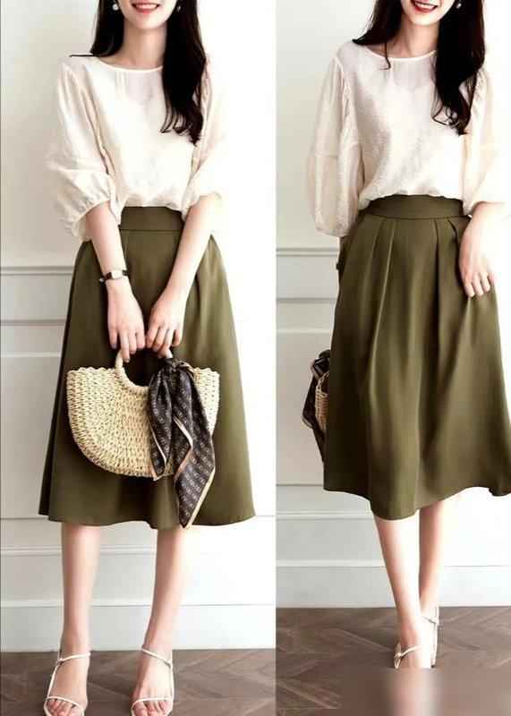 像白衬衫、针织衫、阔腿裤、牛仔裤这些,设计简单但特别实用:A字裙能遮肚子,基础衬衫配九分裤拉长腿型,针织衫材质柔软穿着超舒适。
