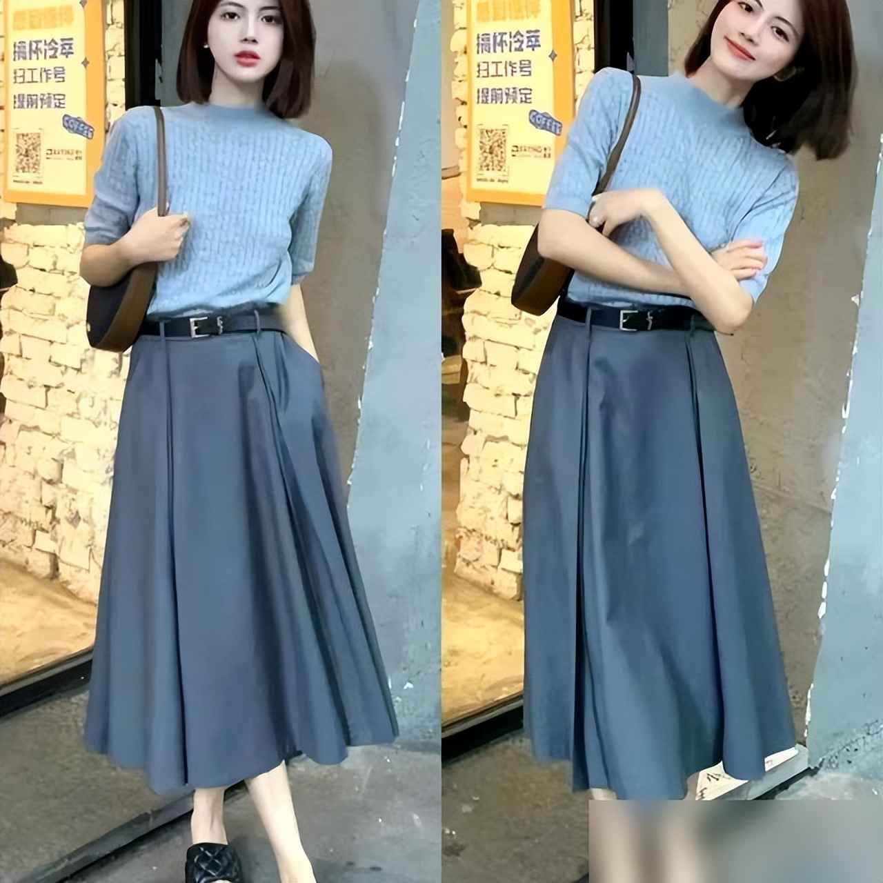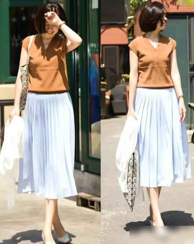比如黑白灰组合,灰色背心配黑色半裙,外搭白色开衫,加条珍珠项链,初秋穿出门,风一吹都显得优雅;如果觉得素净,就搭条棕黄色半裙,黑白灰作底,棕黄像点缀了阳光,立马时尚起来——比穿花哨衣服更显档次。