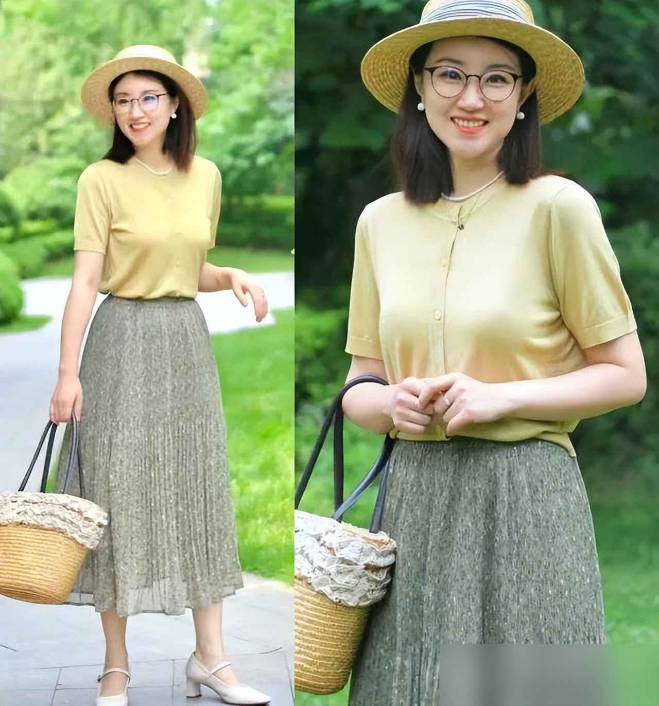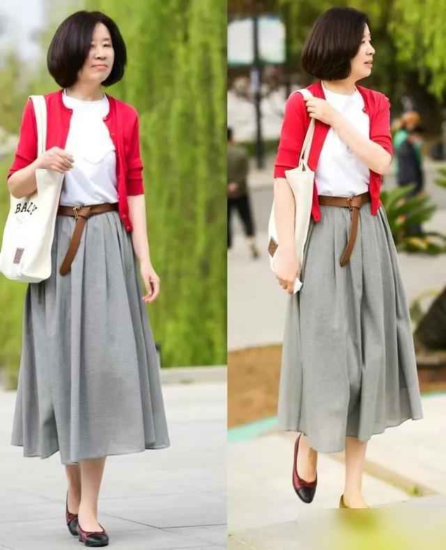 休闲时可以“宽松搭配”,但要有节制:比如宽松白衬衫配灰色阔腿裤,我会把衣角稍微塞一点,避免显臃肿;连衣裙选略宽松的,配白色平底鞋,加顶黑色渔夫帽,稳重中带点活泼,比穿短裙舒服多了,接孩子时老师都说“你今天气质真好”。