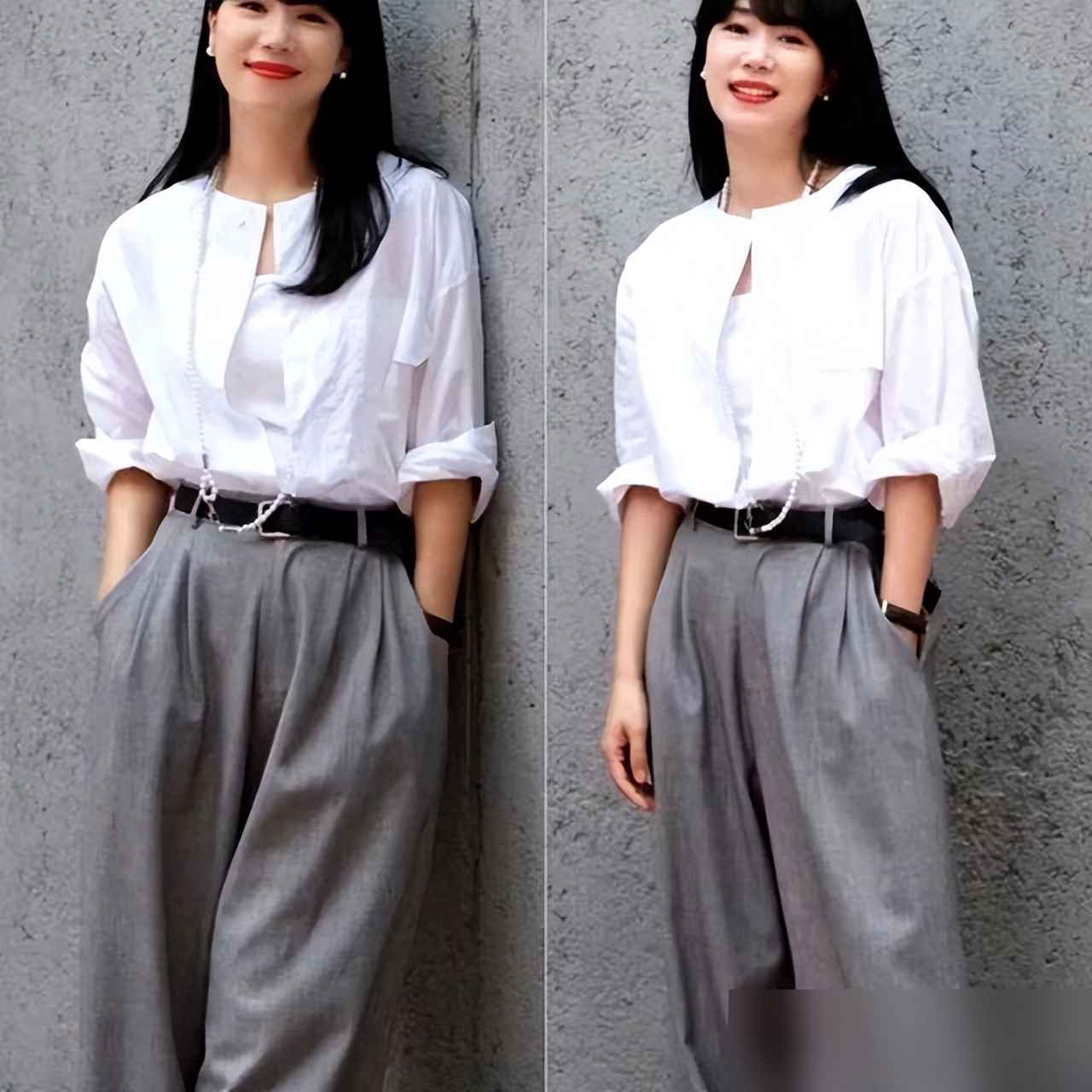 上周我穿了件剪裁合适的白衬衫(不紧不松),配黑色九分裤,裤脚刚好露踝,加双低跟鞋,同事夸“你今天像职场剧里的女主”——其实就赢在“合身”二字。