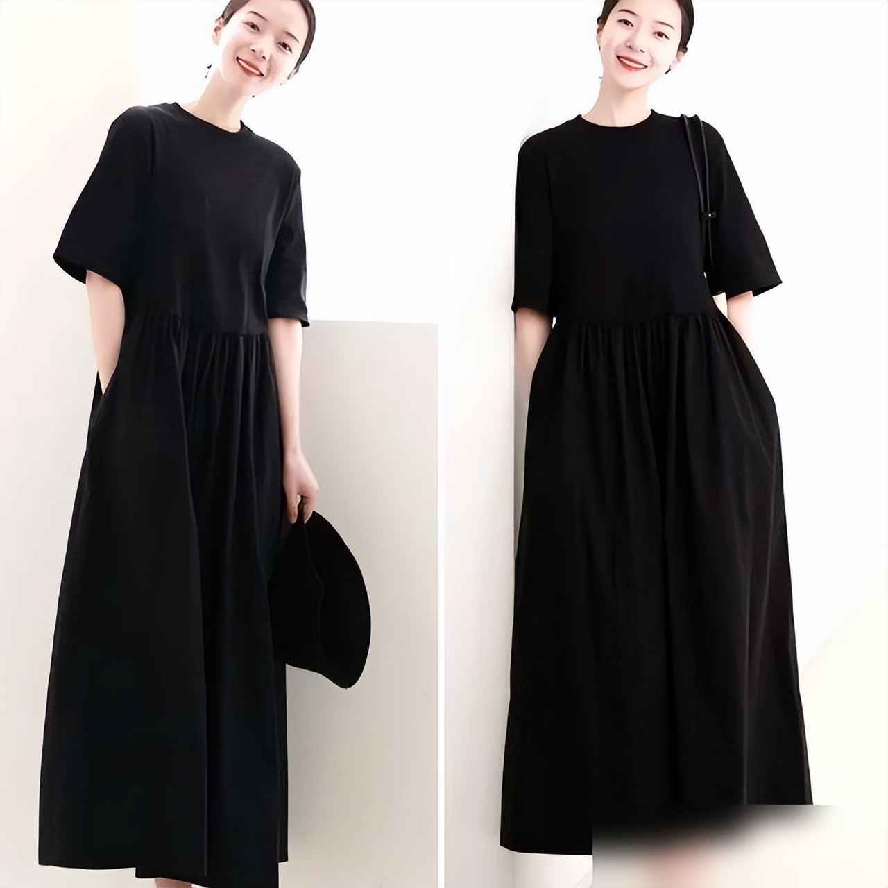 昨天我穿了件米色连衣裙,配白色凉鞋和黑色渔夫帽,接孩子时他盯着我说“妈妈你今天好像电视里的精英”——我笑了,其实就是件普通连衣裙,搭对了而已。