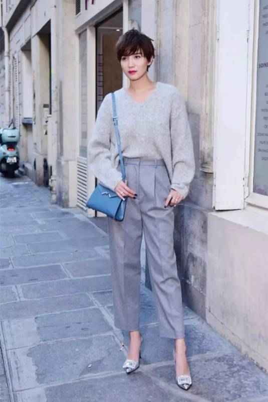 这种搭配的精髓在于“混搭”和“反差”。一条垂感很好的西装阔腿裤,本身是通勤、利落的代表,但当你脚下换上一双厚底运动鞋,整身的感觉立刻就变了-2。专业的正式感被巧妙软化,多了几分亲和与街头酷感,特别有种“都市智性风”的范儿,就是那种看起来很聪明、很会穿的感觉-2。比如,用一套卡其色的西装阔腿裤,搭配米白色的运动鞋,顺色搭配高级感十足;或者用灰色西装裤搭配白色老爹鞋,极简又清爽-2。